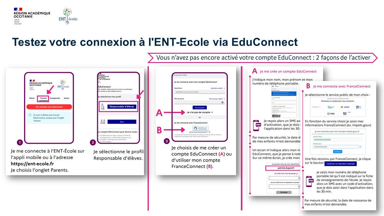 ►Depuis 2024, les parents peuvent se connecter à l'ENT avec leur compte EduConnect.